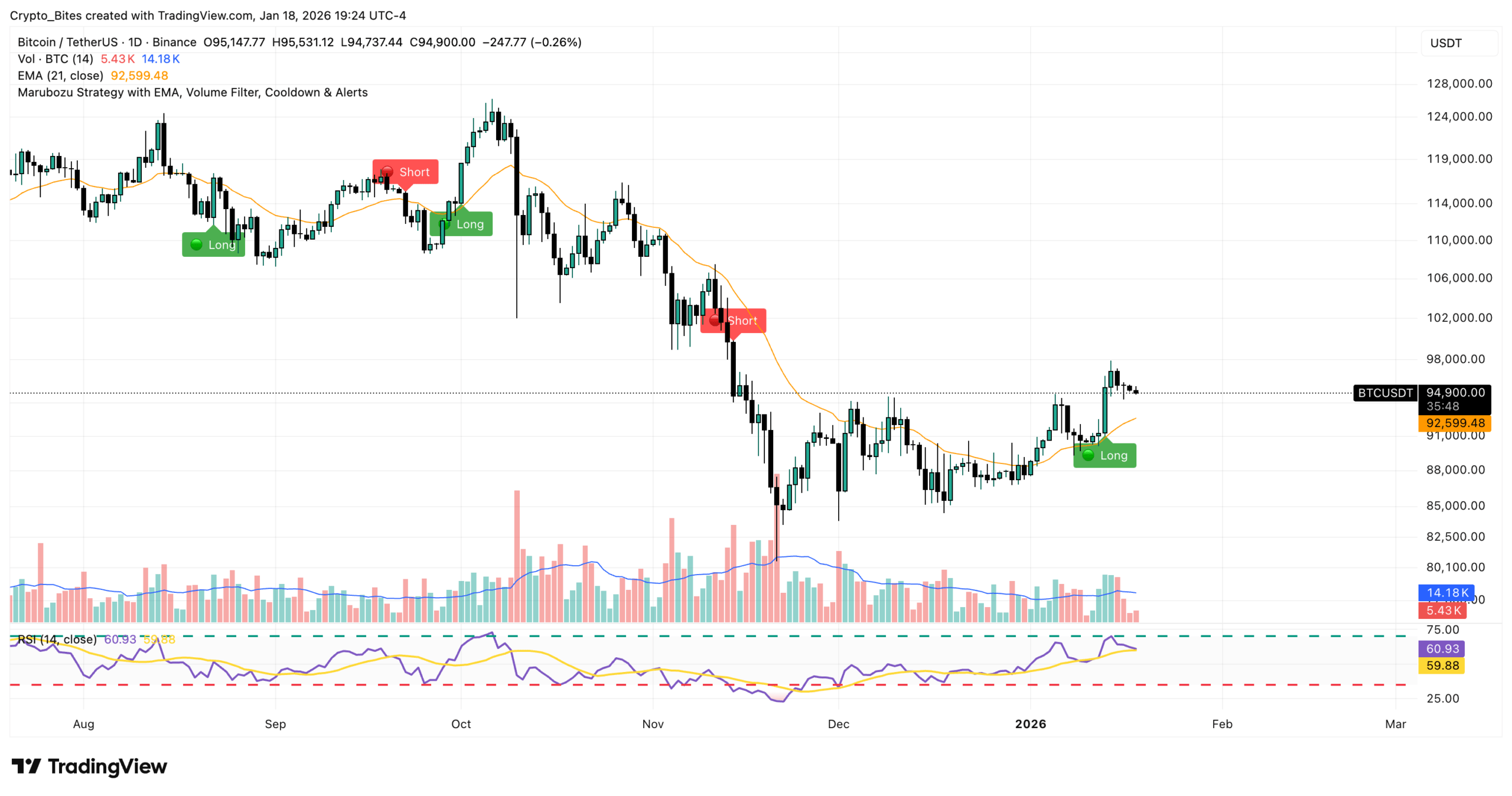 Identifying Strong Trends: Our free Bitcoin trading signals use the token’s exponential moving average (EMA) on multiple timeframes to identify strong trends. When trading financial assets, the trend is your friend.